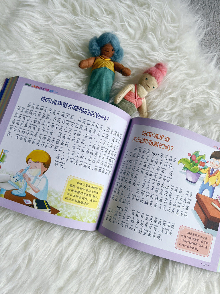 Adapted from a popular Mandarin children's documentary series, this book satisfies the curiosity of a child. Armed with Hanyu Pinyin, it's easy for parents to decipher and read aloud to toddlers who have a neverending list of questions about everything.