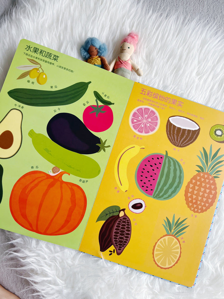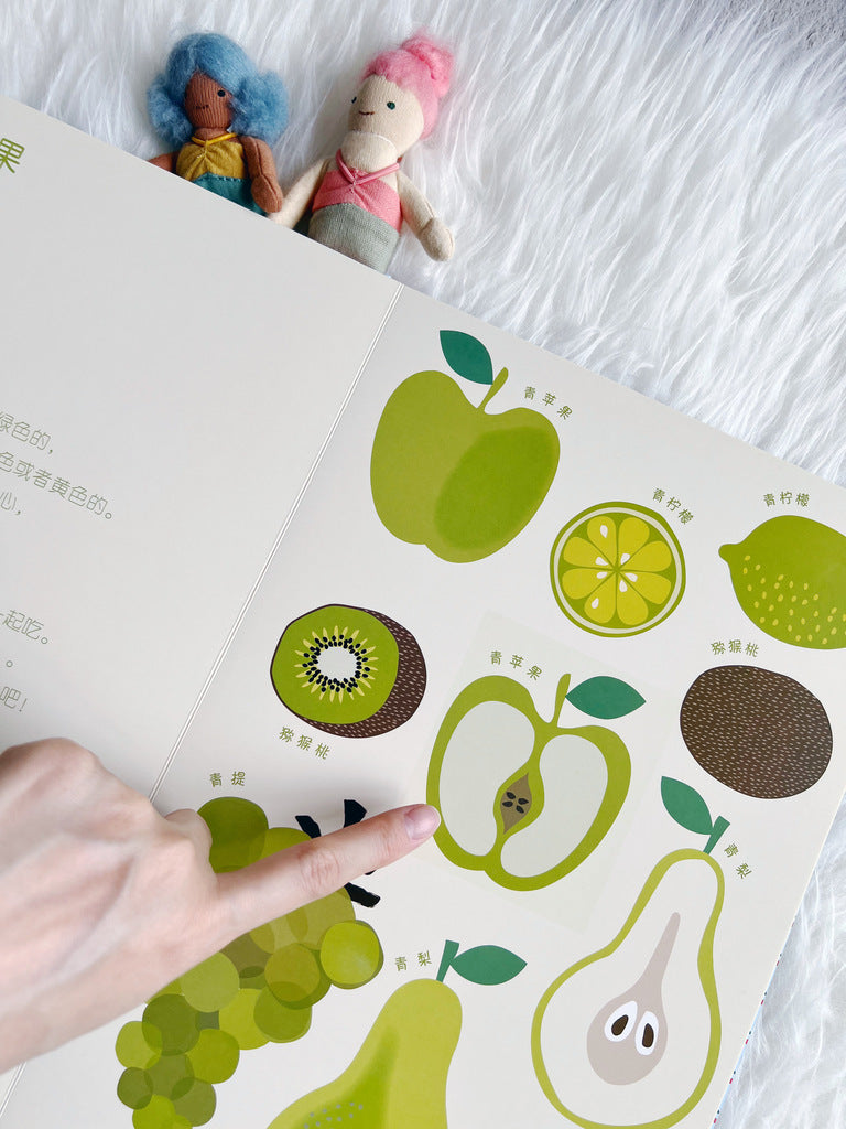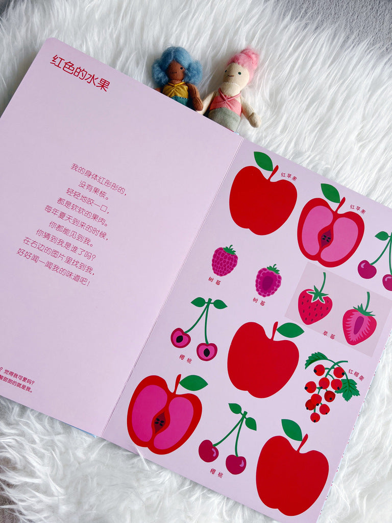 A huge board book introducing 45 fruits and 7 different fruity scents to toddlers. For older kids, a great way to learn to recognise the Chinese characters of these fruits. Swipe your finger over the fruit patches and you'll be able to take a whiff of the fruity fragrance.
