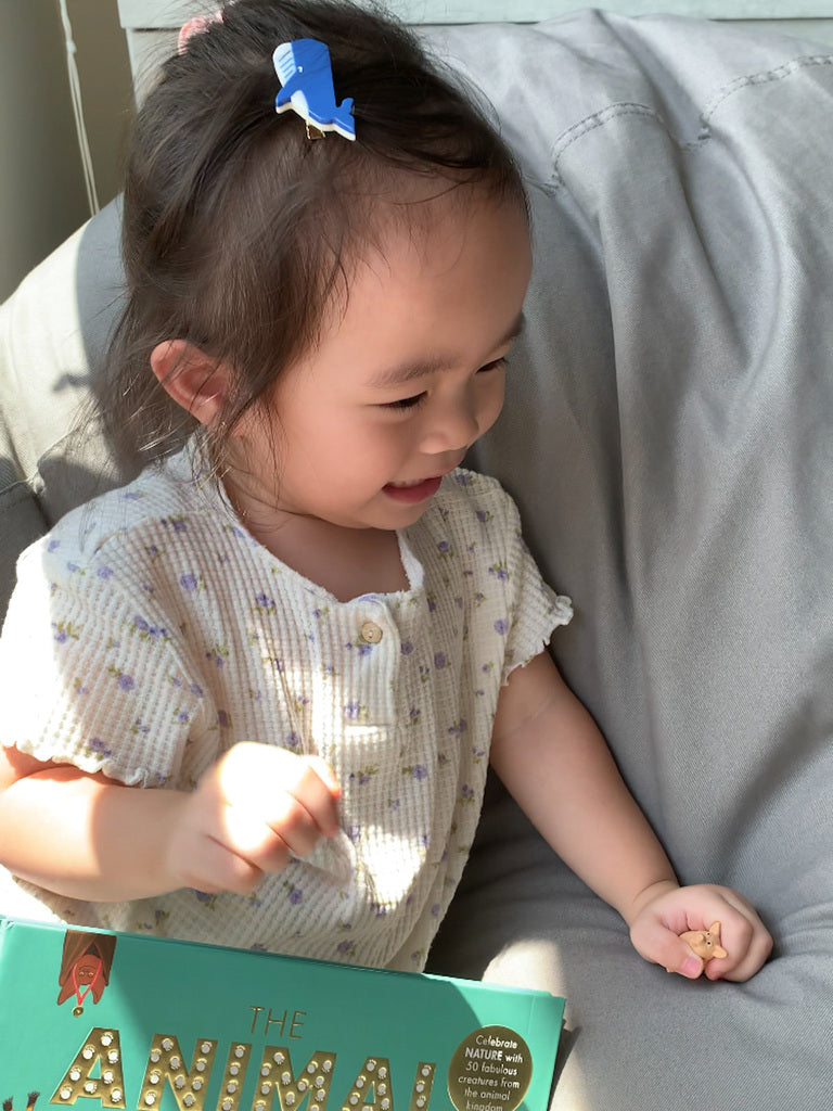 These acrylic animal hairpins are the cutest. Perfect for mummies who are into muted colours and designs, these hairpins look adorable while keeping hair off your toddler's face. Tried and tested on Harper's smooth and fine hair, these hairpins secure her fringe just fine.