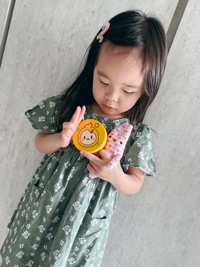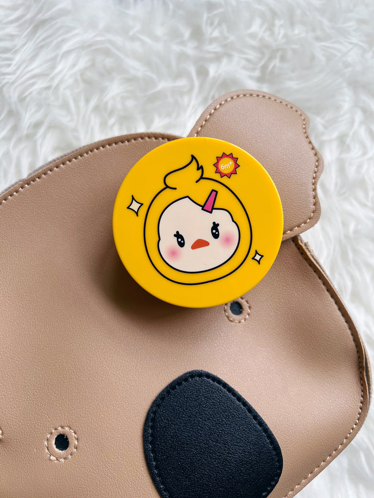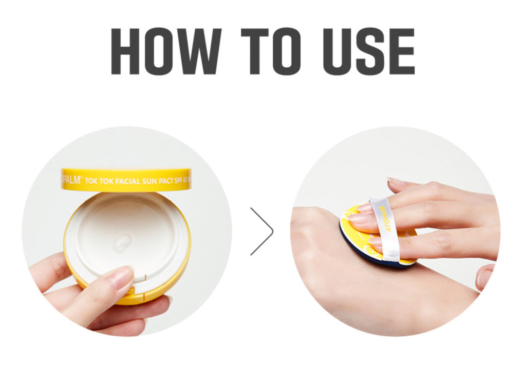 Tok Tok! A fun and portable sun pact with SPF43 PA+++, protecting your skin from UV rays. Simply dispense a moderate amount with the slightest push of the button in the palette, and apply to the entire face with the included puff.