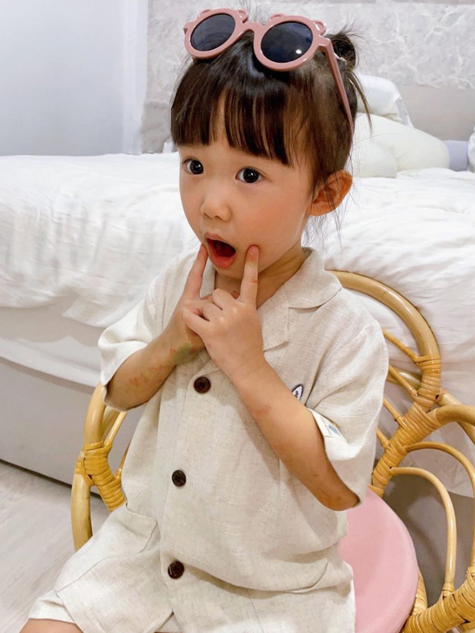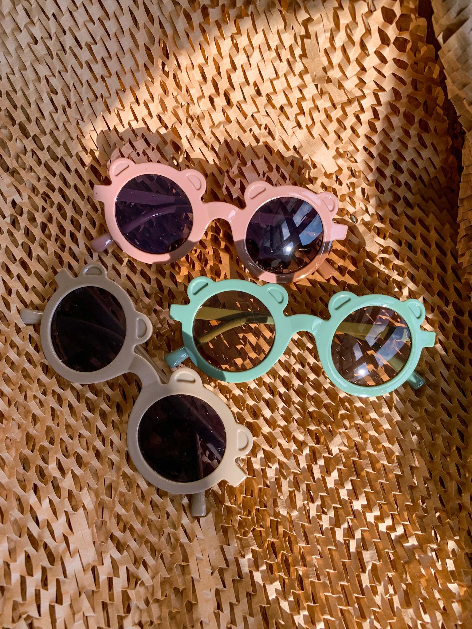 This summer accessory tops the chart on Harper's favourite list. These adorable bear-shaped sunnies sit comfortably on the nose bridges without leaving red indentations. Stood the test of wear by Harper. Made lovingly for toddlers up to 5 years old in three stunning muted shades.