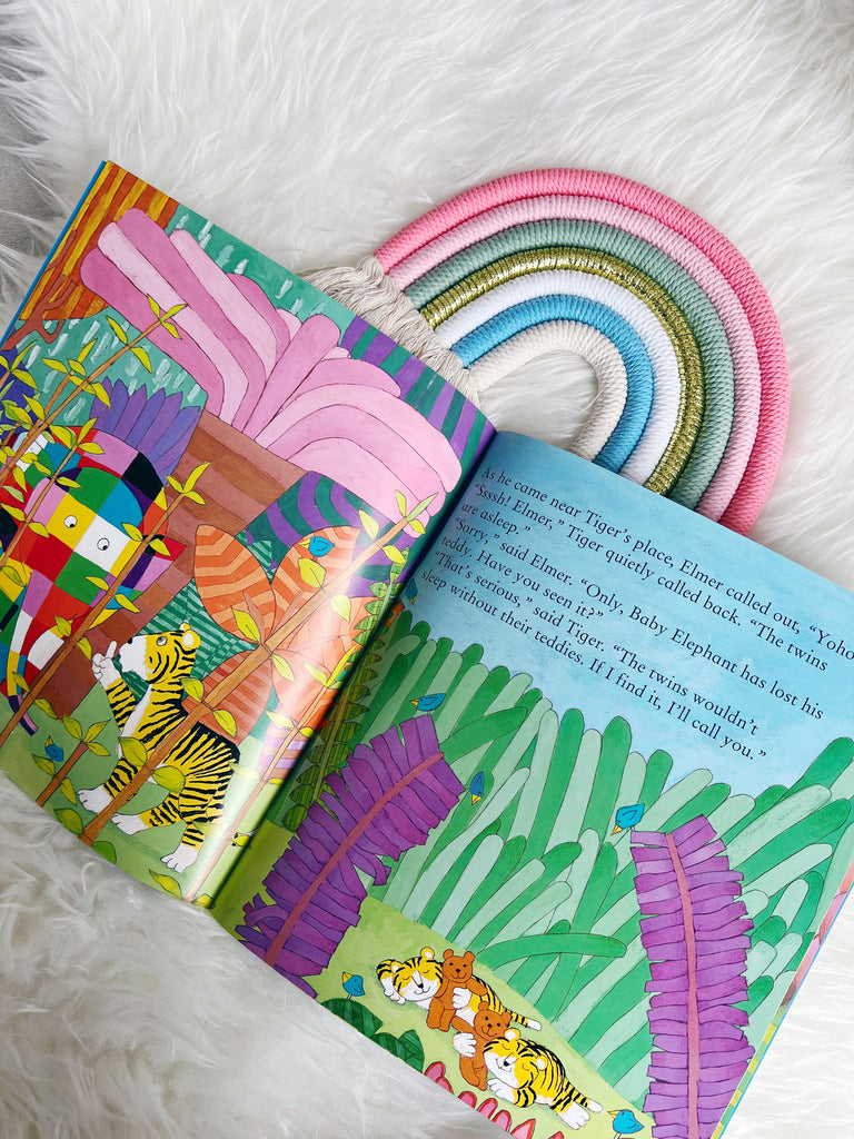 Baby Elephant can't sleep because he has lost his teddy, so Elmer sets off to look for it. Eventually Elmer hears a voice shouting 'Help! I'm lost!' Can Baby Elephant's teddy talk, or is Wilbur playing a trick on Elmer, as usual?