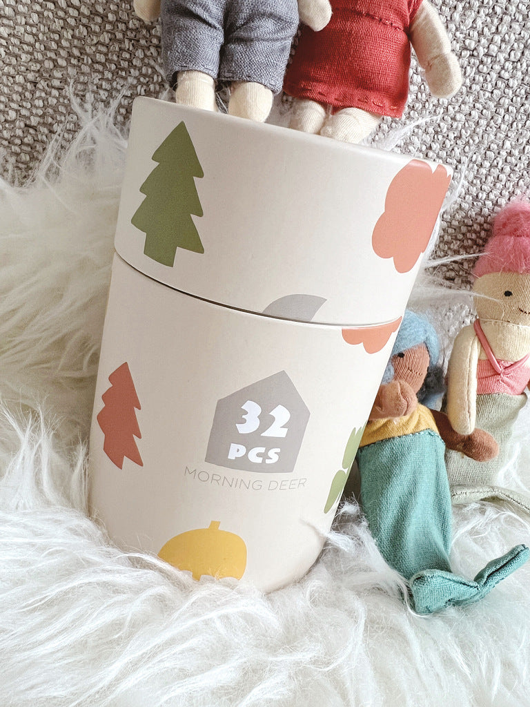 A box of 32 cards, get your little one to put her memory to work with this Morning Deer memory card game. Made of recycled waterproof cardboard.