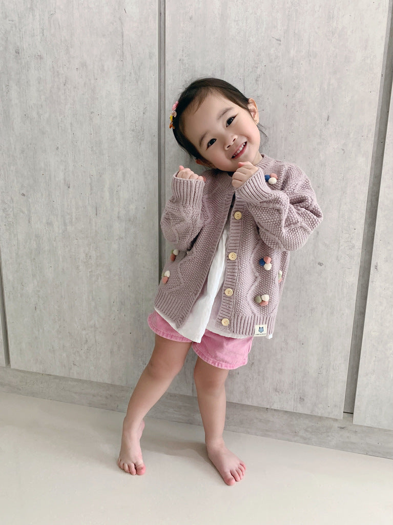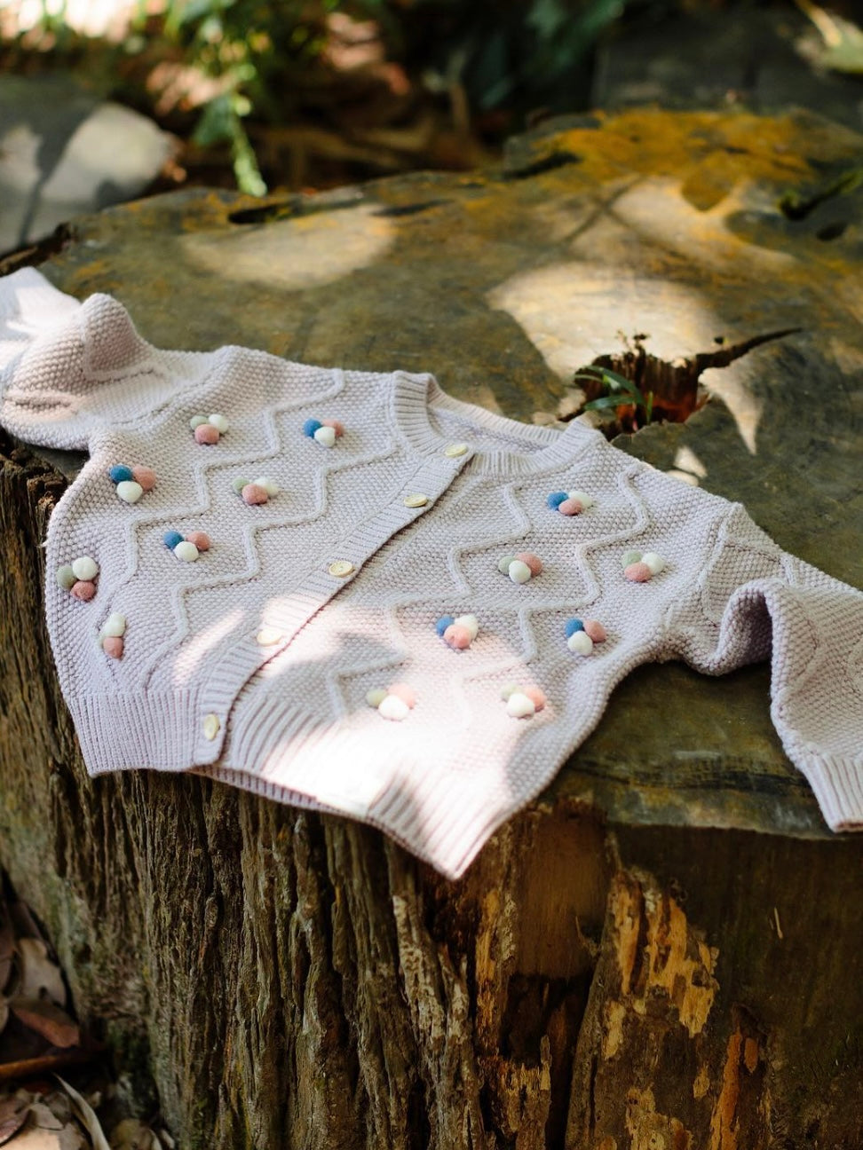 Adorned throughout the front with colourful pom poms, Harper squealed with delight when she first spotted Pernille and proceed to pinch the pom poms. Pernille is a great layering piece on rainy days. Harper enjoys wearing hers to school on colder days. Bid goodbye to scratchy necks, our clothing label is neatly sewn on the hem of Pernille.