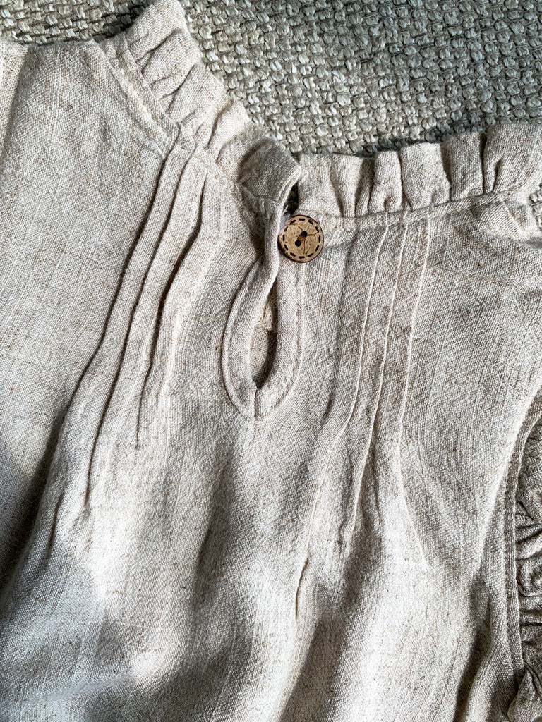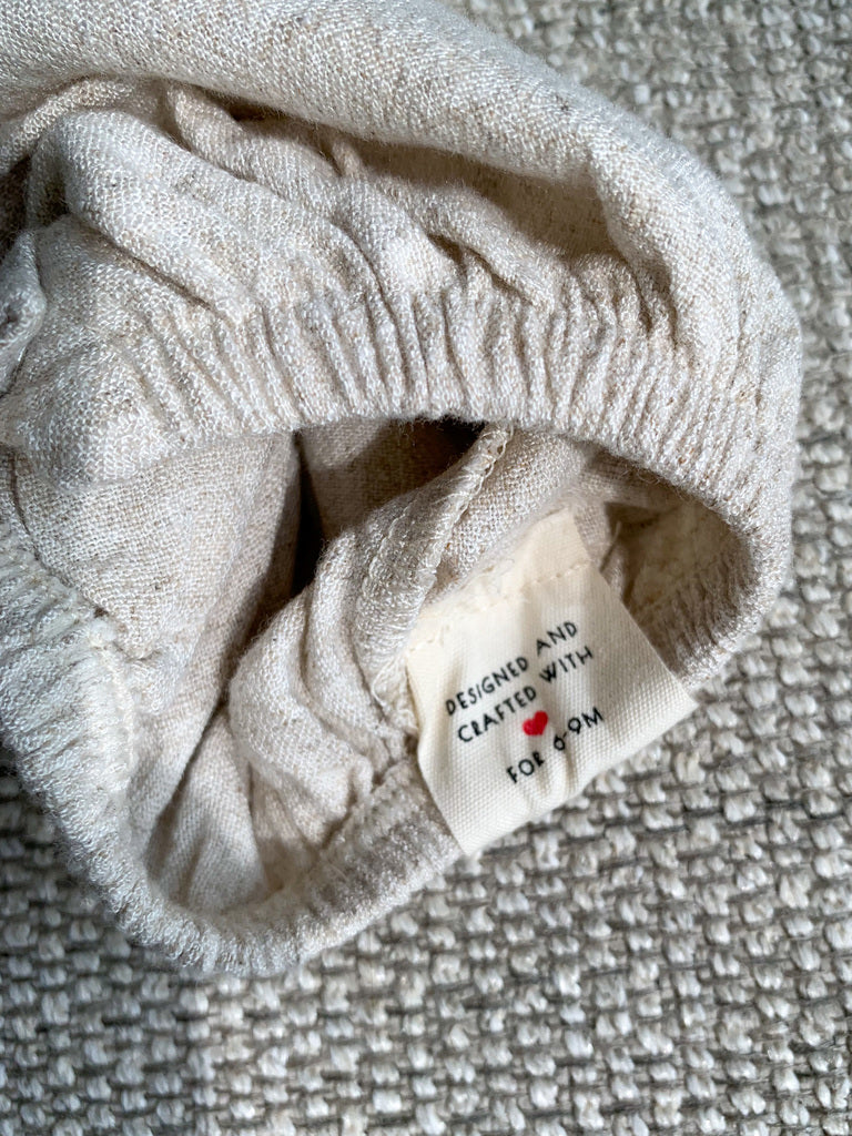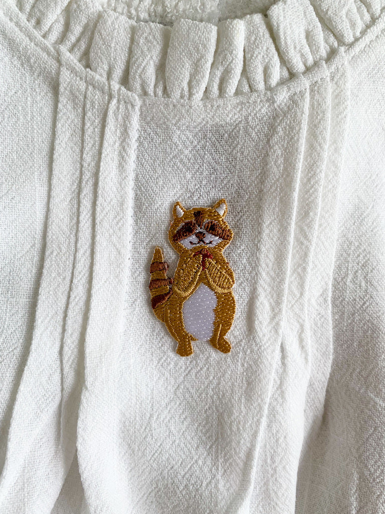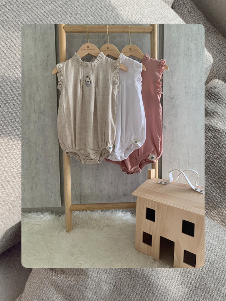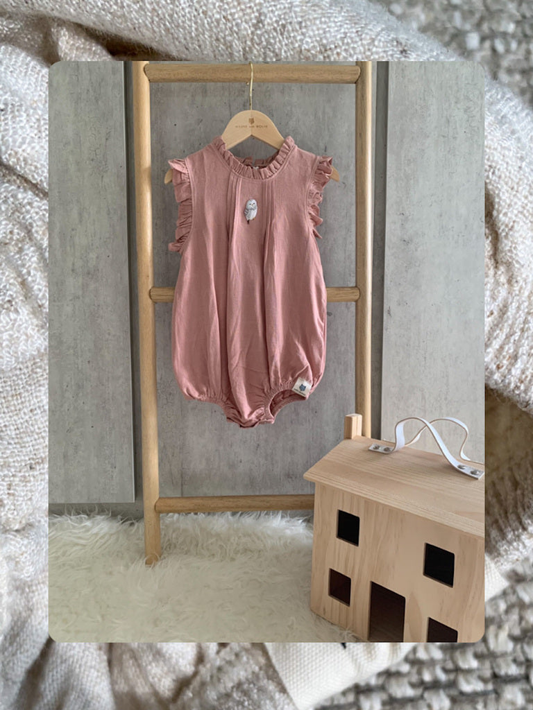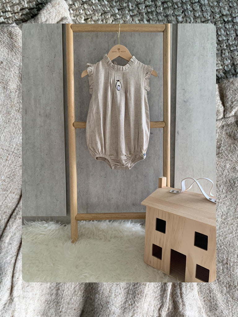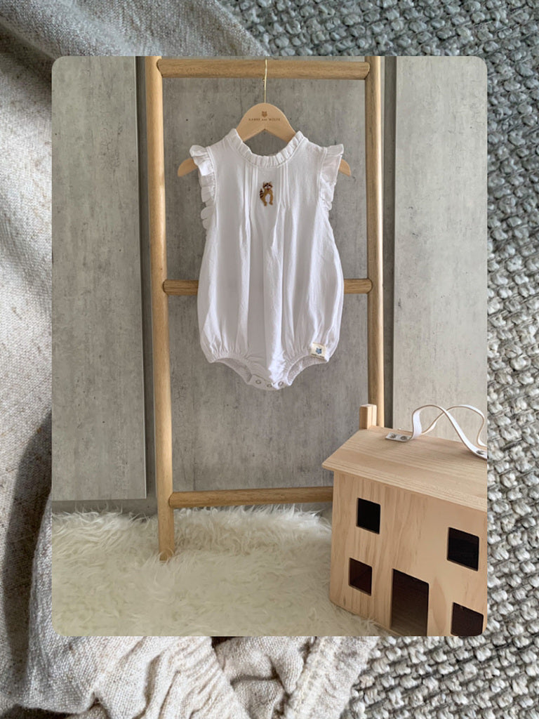 The Savannah pleated onesie was the very first design that came to fruition. The vision was to create a comfortable and chic onesie that our little ones could wear on a day out. We also wanted to craft clothing which was easy for our little ones to move around as they learned to crawl and walk. The delicate ruffles at the neckline and arms and the pleated details add a special touch to the otherwise conventional onesie. We've also added adorable animal patches on the front to give the onesie a whimsical touch. Savannah fastens with bottom snap fasteners and a back button. Bid goodbye to scratchy necks, our Harper and Wolfie clothing label is neatly sewn on the hem of Savannah.