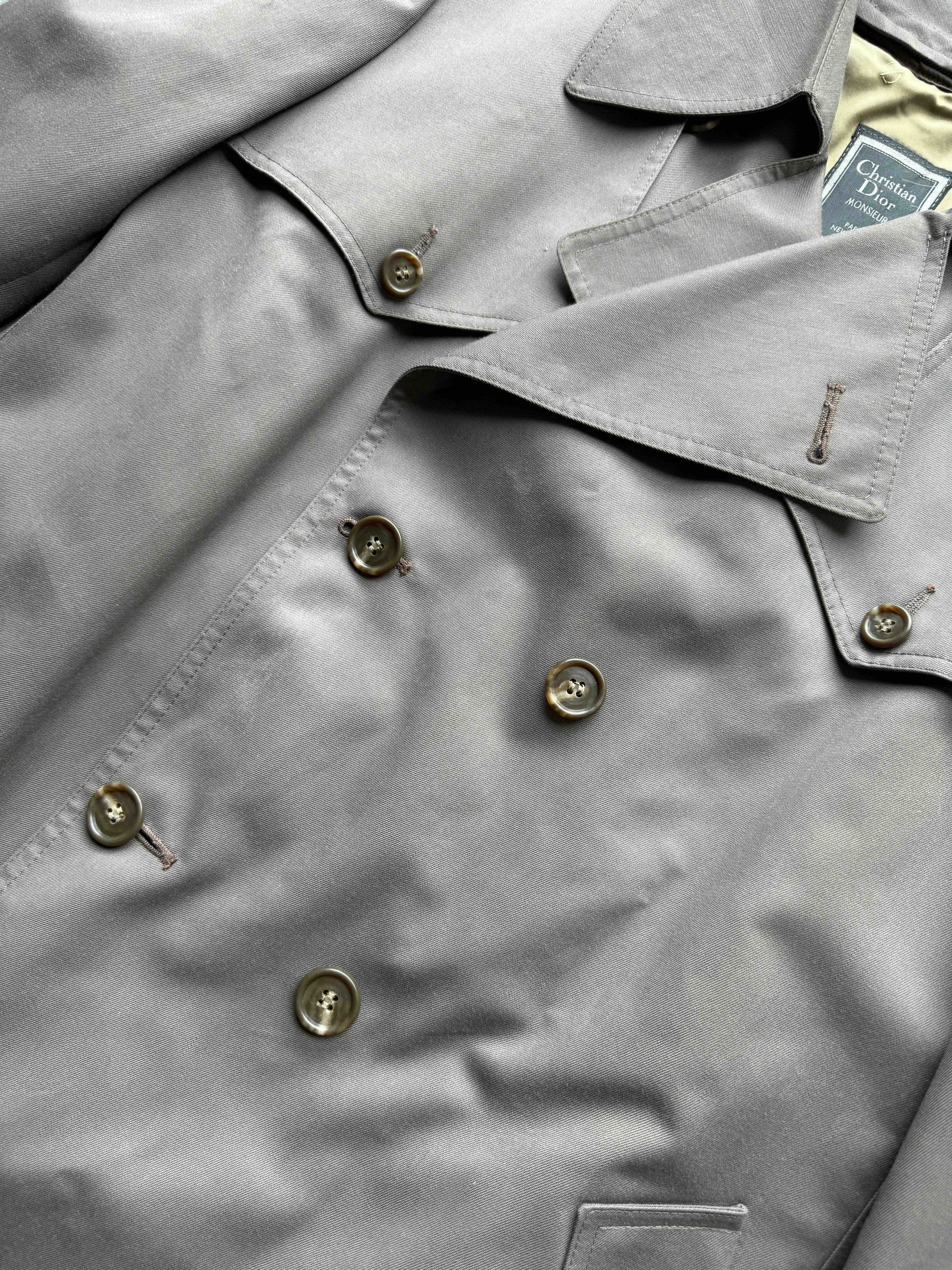 Elevate your wardrobe with this vintage Christian Dior Monsieur trench coat, a true classic that combines impeccable craftsmanship with the timeless elegance Dior is known for. In excellent condition, this piece is not only a statement of style but also a collector's dream. This rare piece comes with a removable wool lining that is fully zipped in; the coat itself has a satin lining.