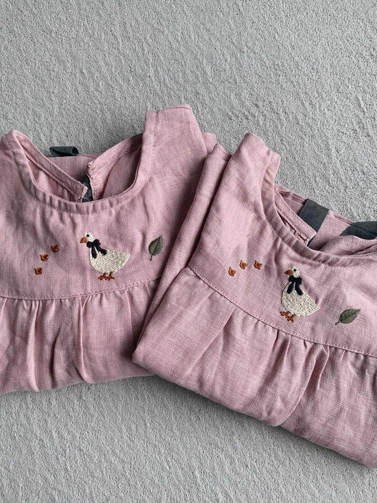 Made of 100% linen, Wren features a cutesy Mother Goose embroidery on the chest and a ribbon-tie at the nape of the neck. The billowy long sleeves make Wren the perfect light-weighted top to wear on rainy days. Bid goodbye to scratchy necks, our clothing label is neatly sewn on the hem of Wren.